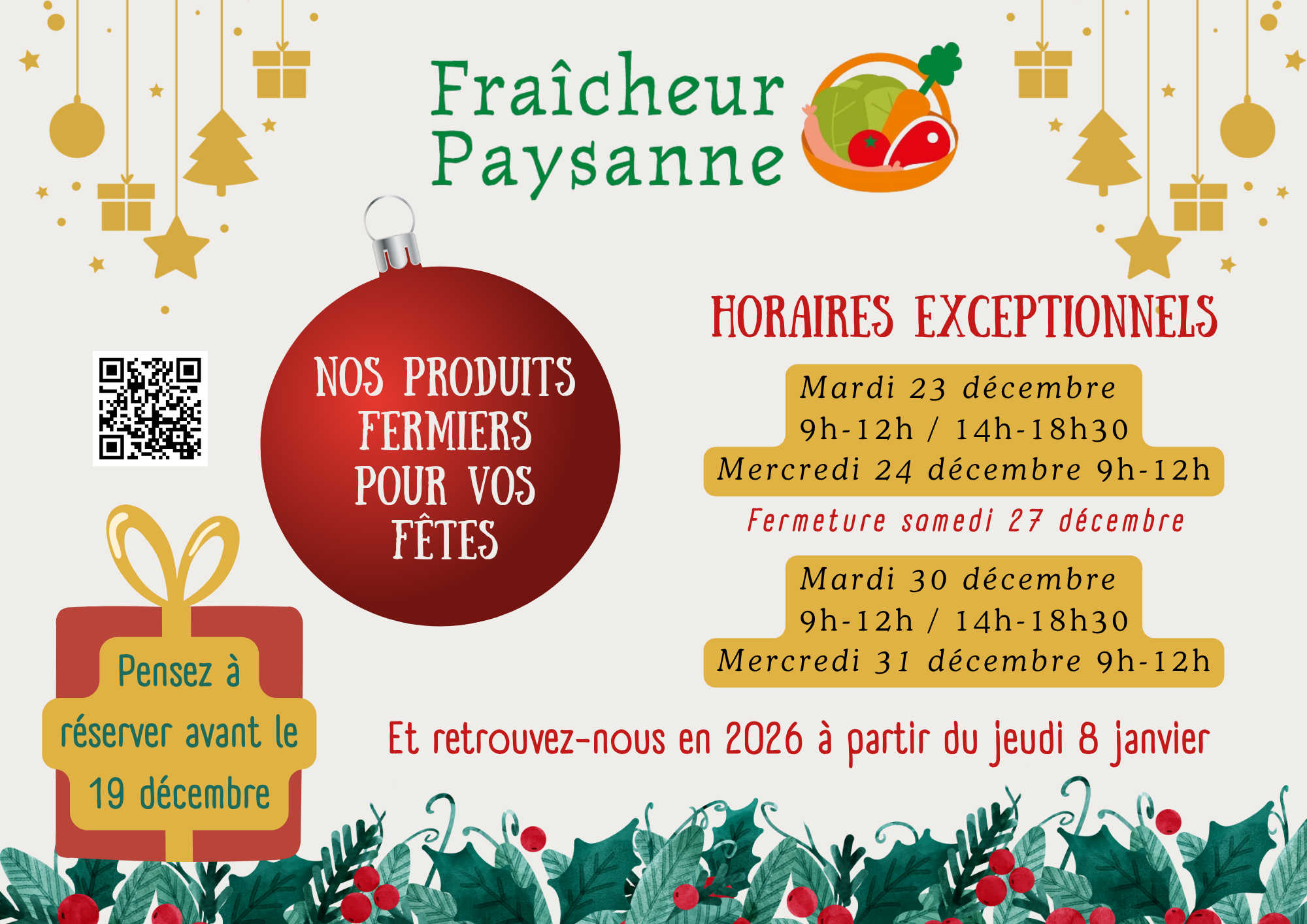 Le magasin des producteurs fermiers Fraicheur Paysanne est ouvert du jeudi au samedi :